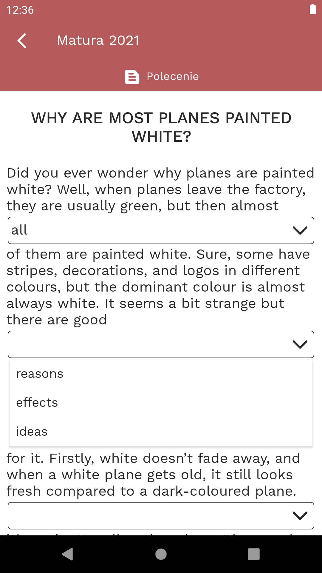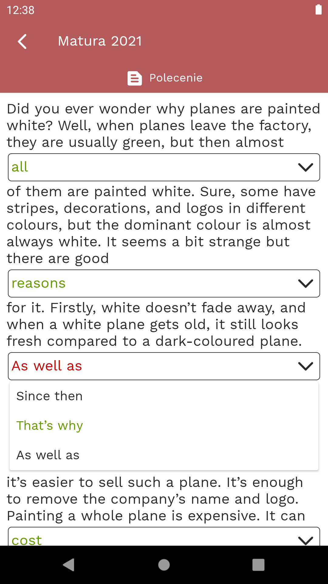 The app is intended for students taking the Polish matura exam. It will help you prepare for the exam at both basic and extended levels. Solve tests with sets of questions that have appeared on the matura exams since 2006. The app includes questions that test your grammar, as well as vocabulary. The app does not require an internet connection - practice, learn and improve your results anytime and anywhere.