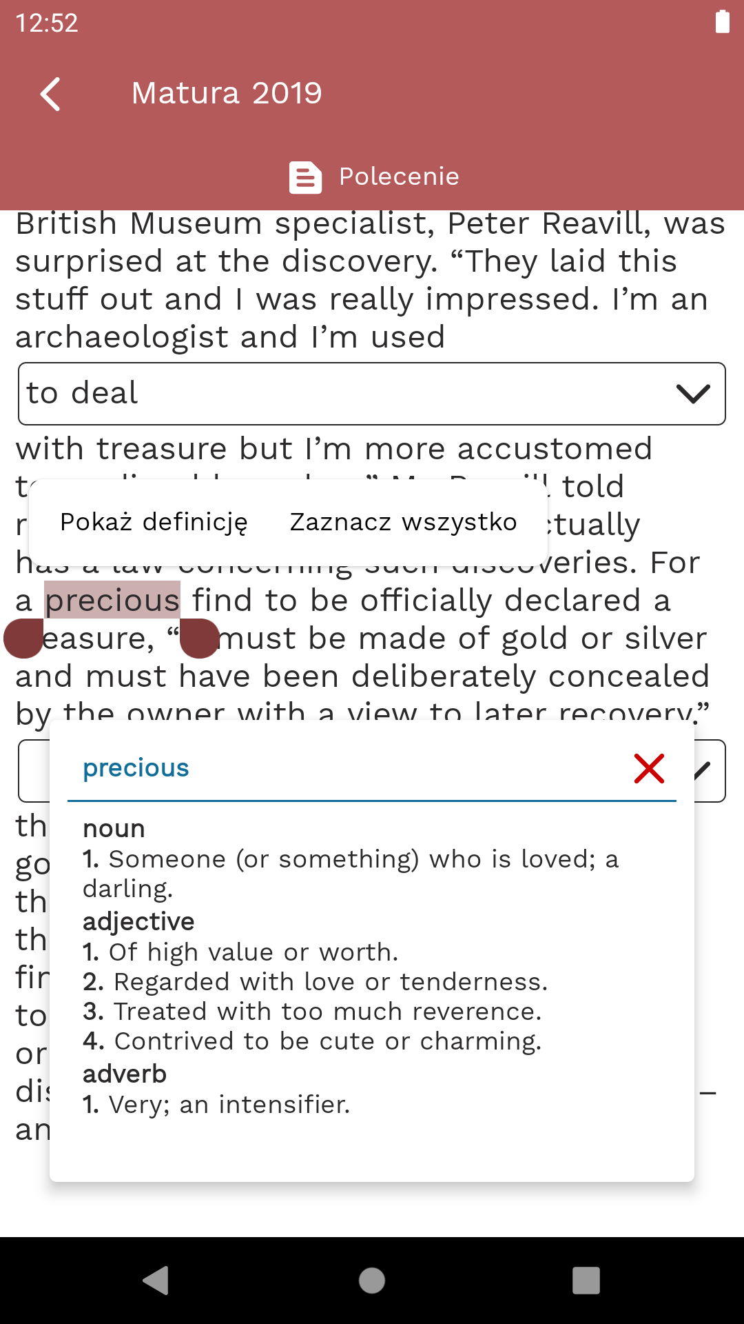 Rozwiązuj zadania z dłuższym tekstem. Użyj wbudowanego słowniczka, aby poznać znaczenie nowych słówek.