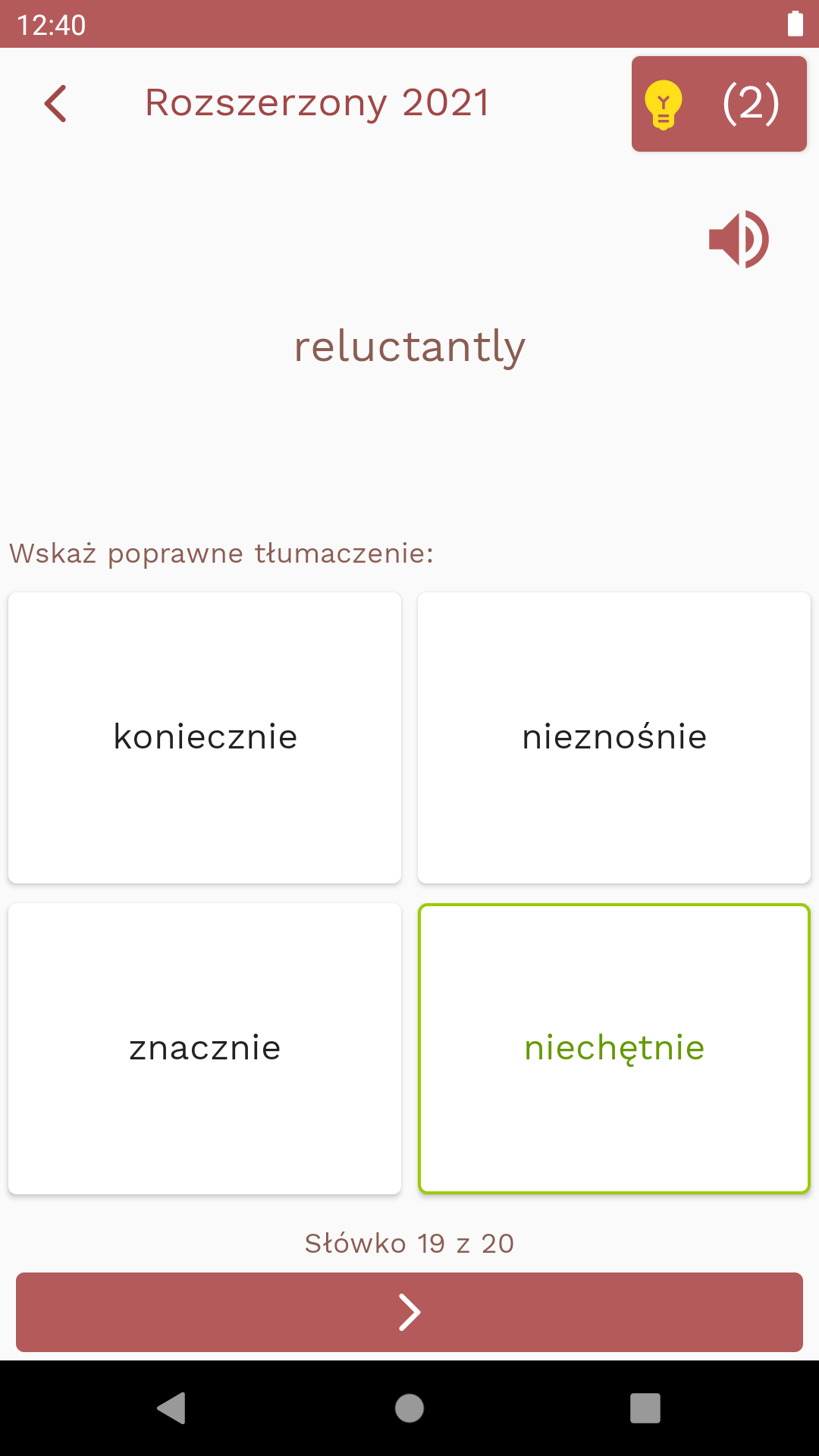 Sprawdź znajomość swojego słownictwa rozwiązując krótkie quizy ze słówkami, które wystąpiły w zadaniach i tekstach na maturze. Aplikacja pozwala na odsłuchanie poprawnej wymowy słówek, co pozwala skuteczniej utrwalić wiedzę.
